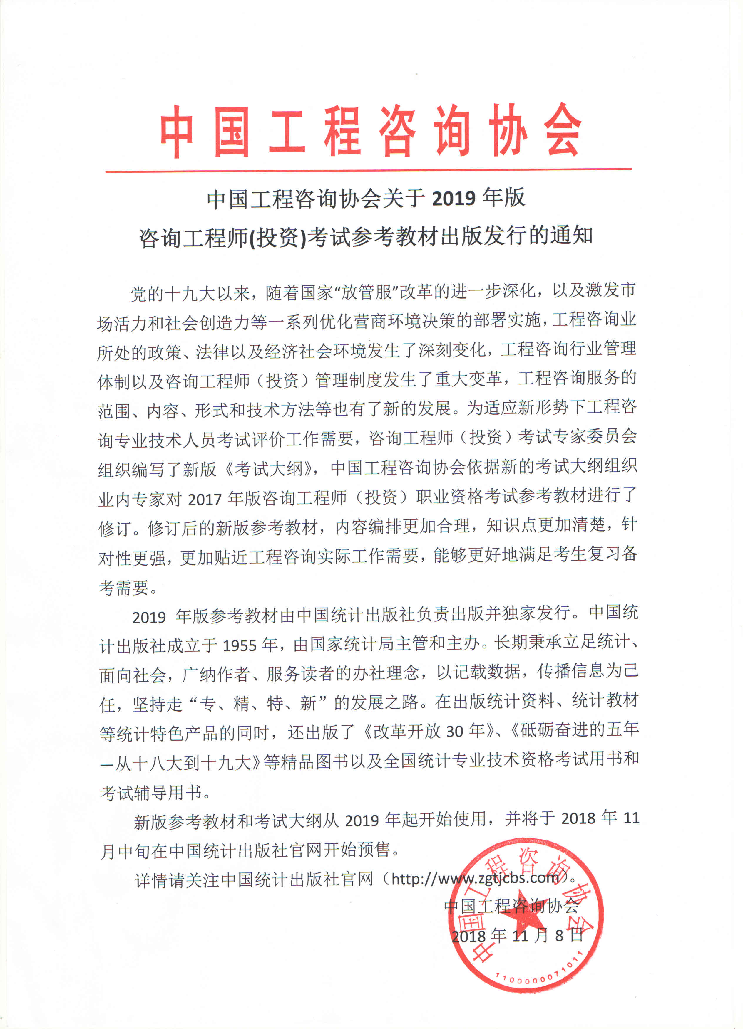 新版参考教材和考试大纲从2019年起开始使用,并将于2018年11月中旬在中国统计出版社官网开始预售。