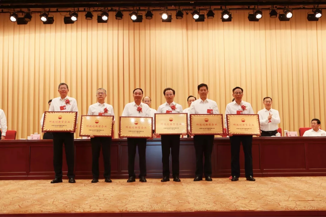 公司执行董事、党委书记肖宏伟(左二)代表公司领取科技创新型企业奖