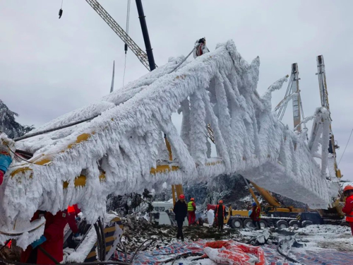 徐工XCA起重机在塞北呼伦贝尔零下40度极寒下进行着高寒试验,昆仑液压油为其保驾护航。