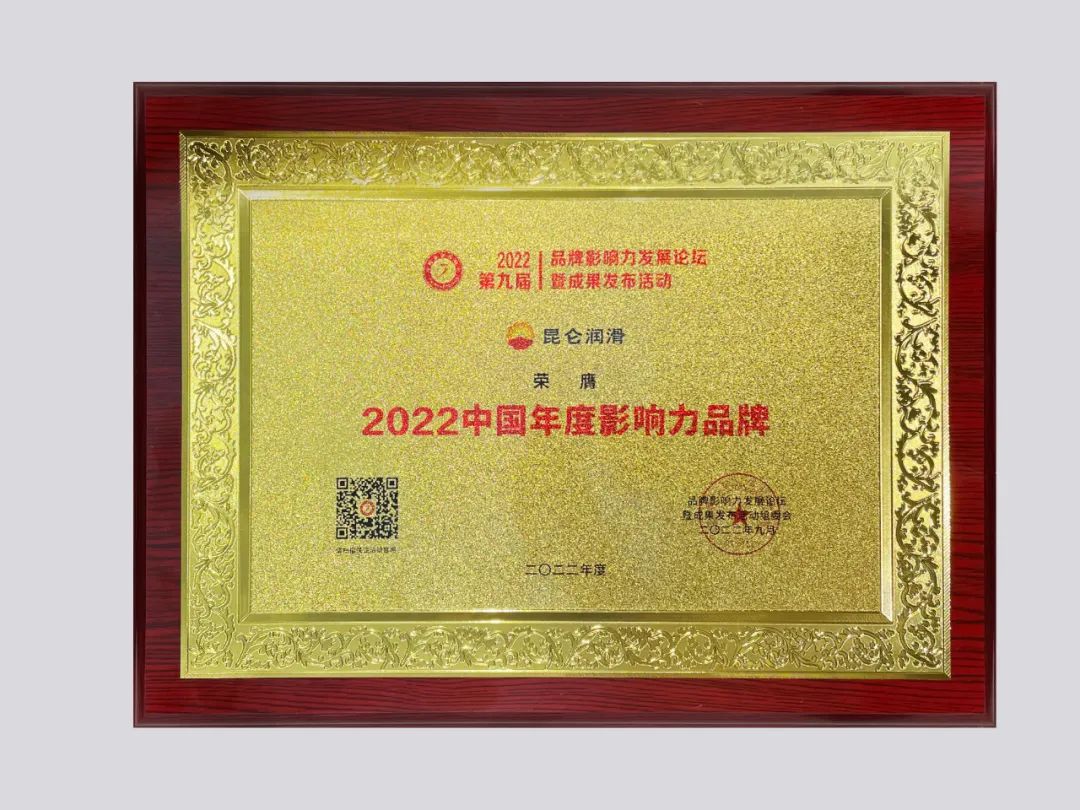 近日,昆仑润滑荣获“2022中国年度影响力品牌”。昆仑润滑已经连续两年获得该奖项。