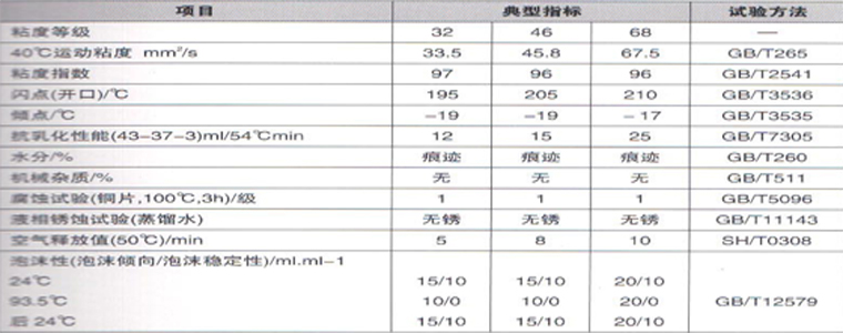 良好的氧化安定性、防锈性和润滑性能,较好的抗泡性和空气释放性能
