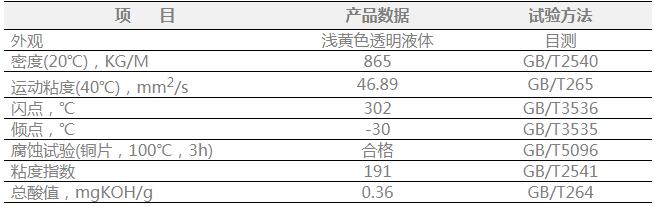 | 技术参数(典型数据): | v 本产品系采用可生物降解的新戊基多元醇酯,并加入优质抗磨、防锈、消泡等多种添加剂精制而成, 是符合环保要求的绿色润滑油。 |